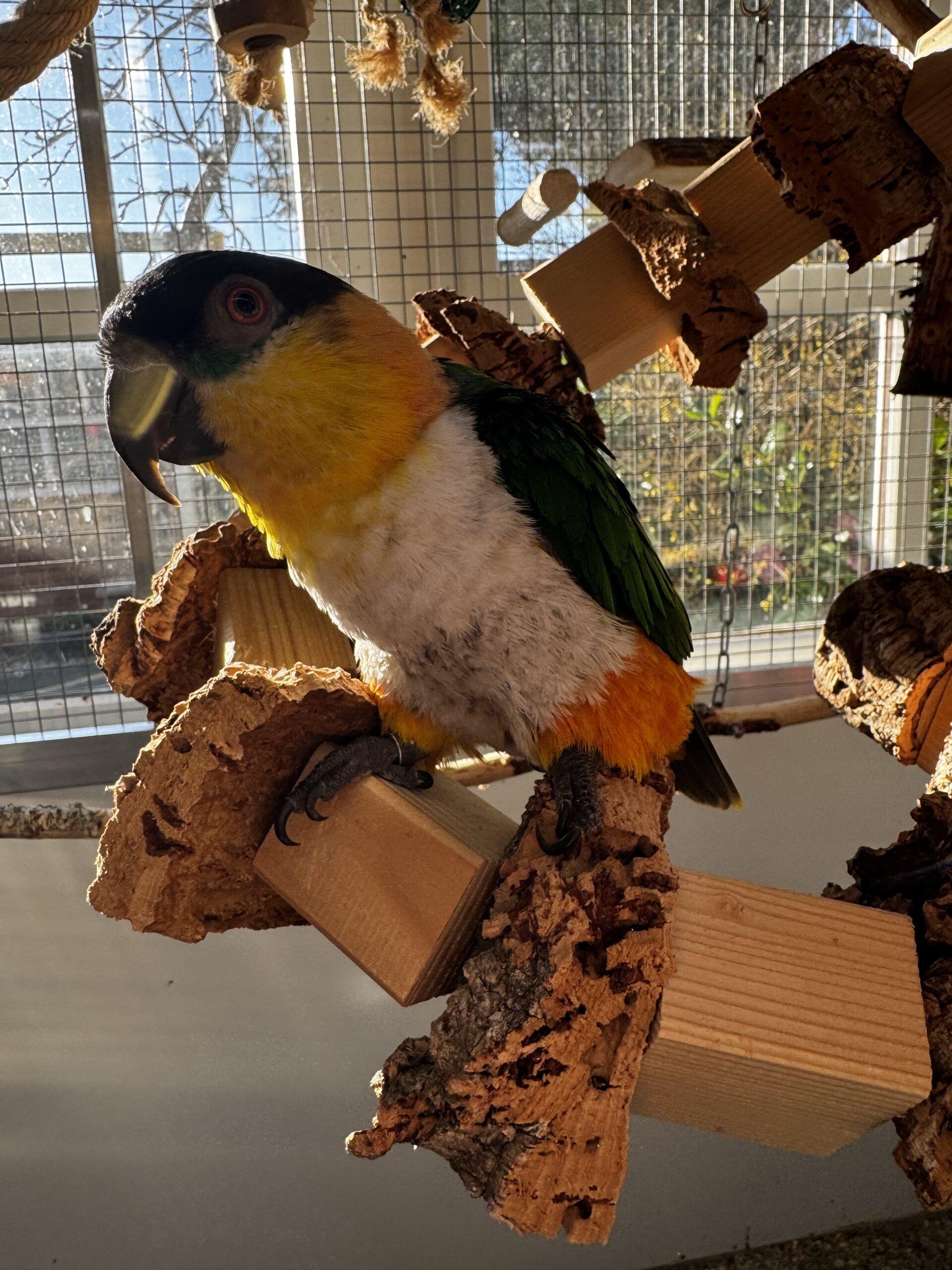 Natuurlijk is het heel belangrijk een goede kooi te hebben als huis voor je caique(s). Een caique kan zo rond de 40 jaar oud worden, dus een goede kooi is een investering waar je (hopelijk) jaren plezier van kunt hebben. Kies dus voor een degelijke kooi!
